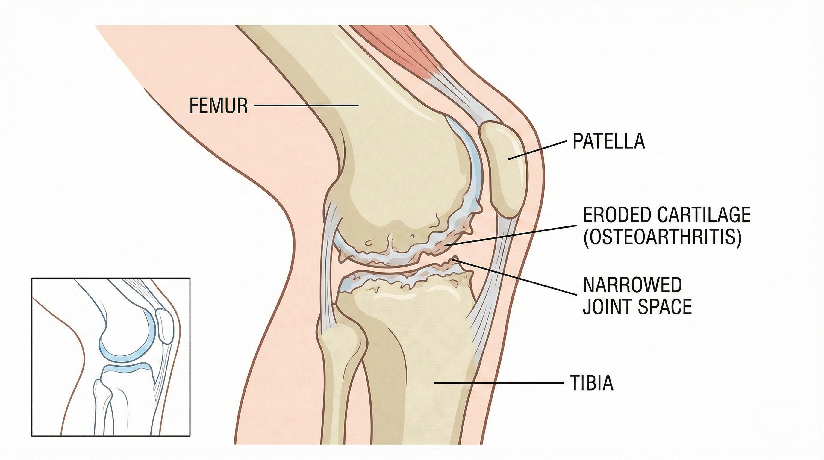 🦵 1. 가장 흔한 원인: 퇴행성 관절염